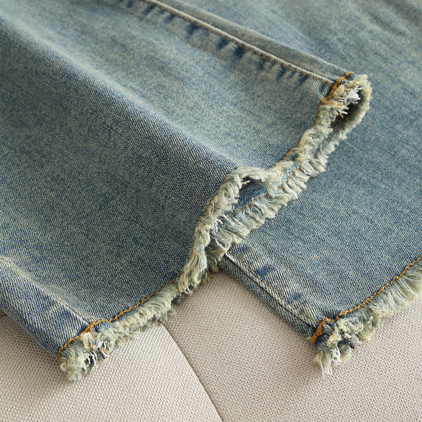 高街解构阔腿裤 V37美式 潮牌宽松直筒裤 男秋季 复古褶皱弯刀牛仔裤