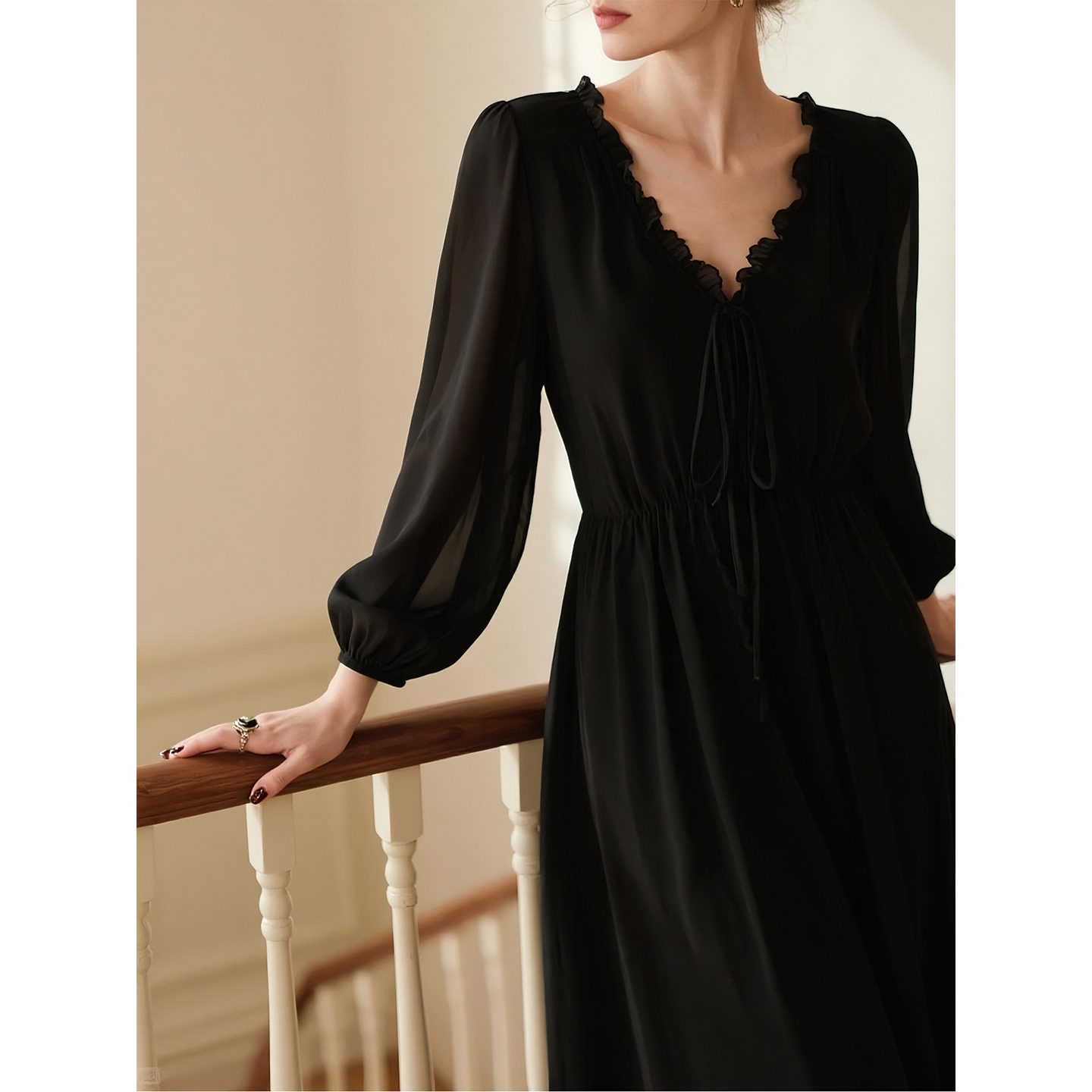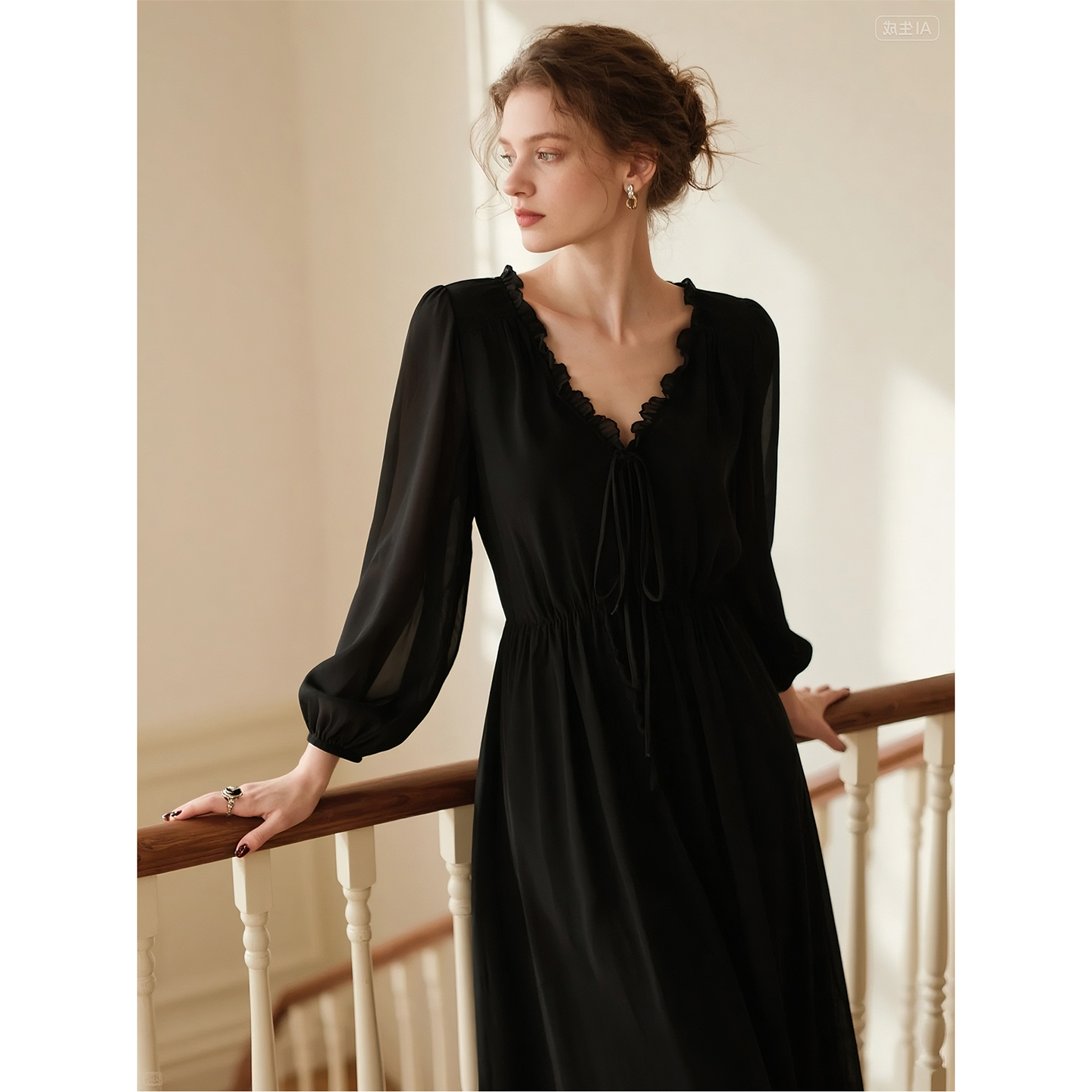 连衣裙女 赫本风黑色裙子气质小黑裙长袖 晚白2025秋冬爆款 轻奢法式