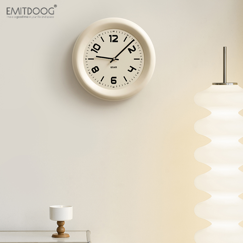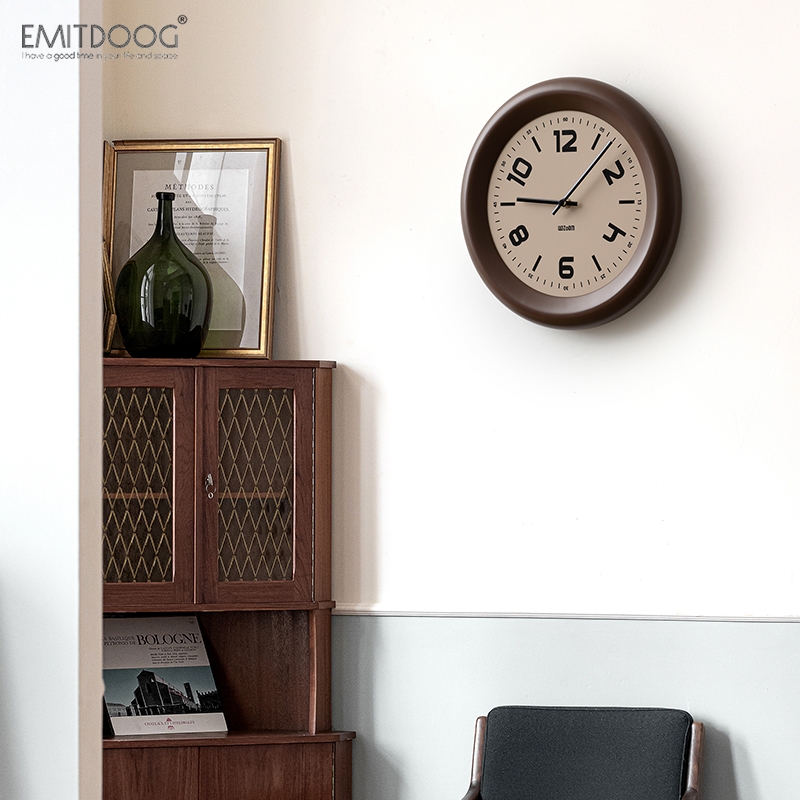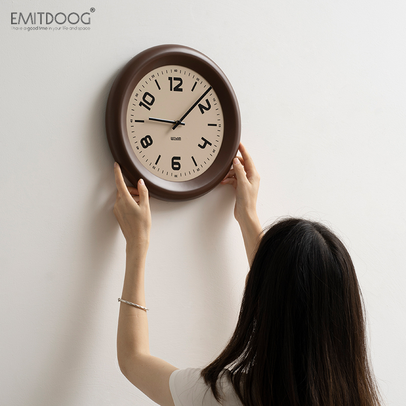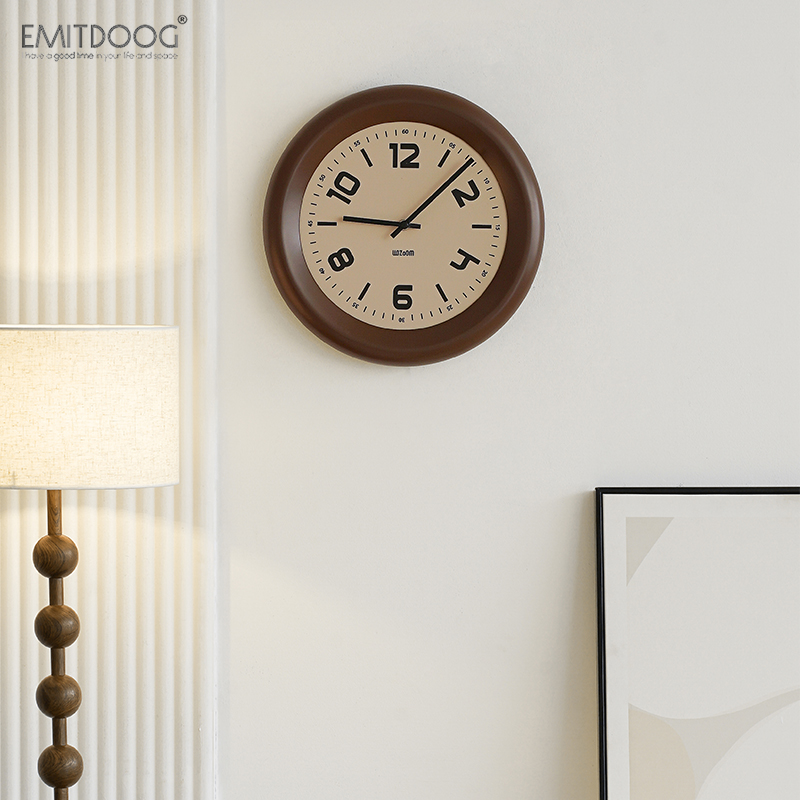 EMITDOOG免打孔中古挂钟2025新款 客厅创意钟表挂墙家用时钟高级感