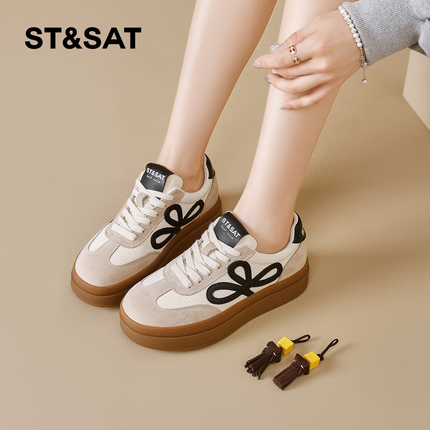女2025春秋新款 板鞋 鞋 休闲爆款 女 子女厚底运动小白鞋 Semir德训鞋