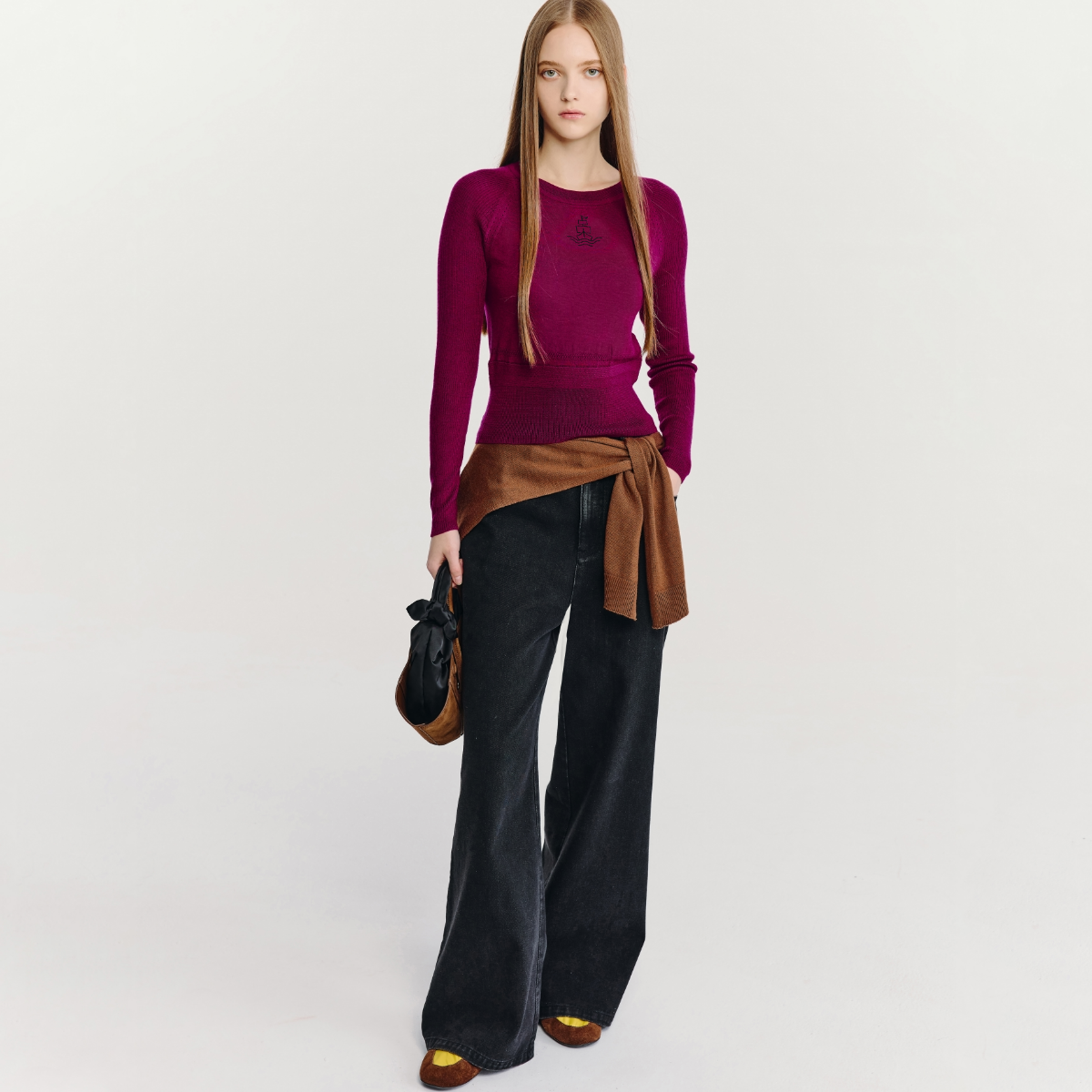 飘蕾纯色圆领套头毛衣2025年秋冬新款 显瘦绵羊毛百搭针织打底上衣