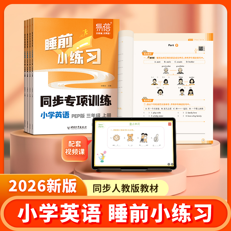 PEP版 小学英语睡前小练习同步人教版 课本单词语法句子同步专项训练三四五六年级课堂练习册课课练一课一练同步练习册 易蓓