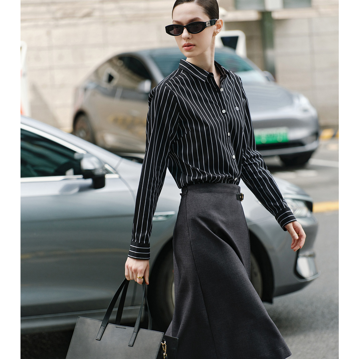 GFX1E900571 24春新品 GXG男装 黑色激光烧花通勤牛仔衬衫
