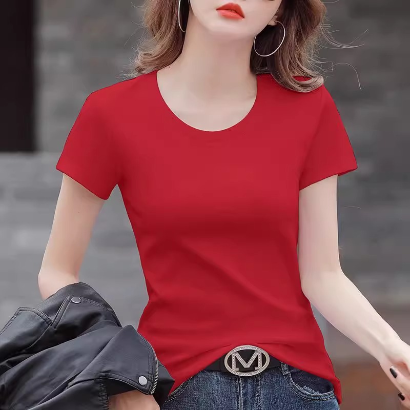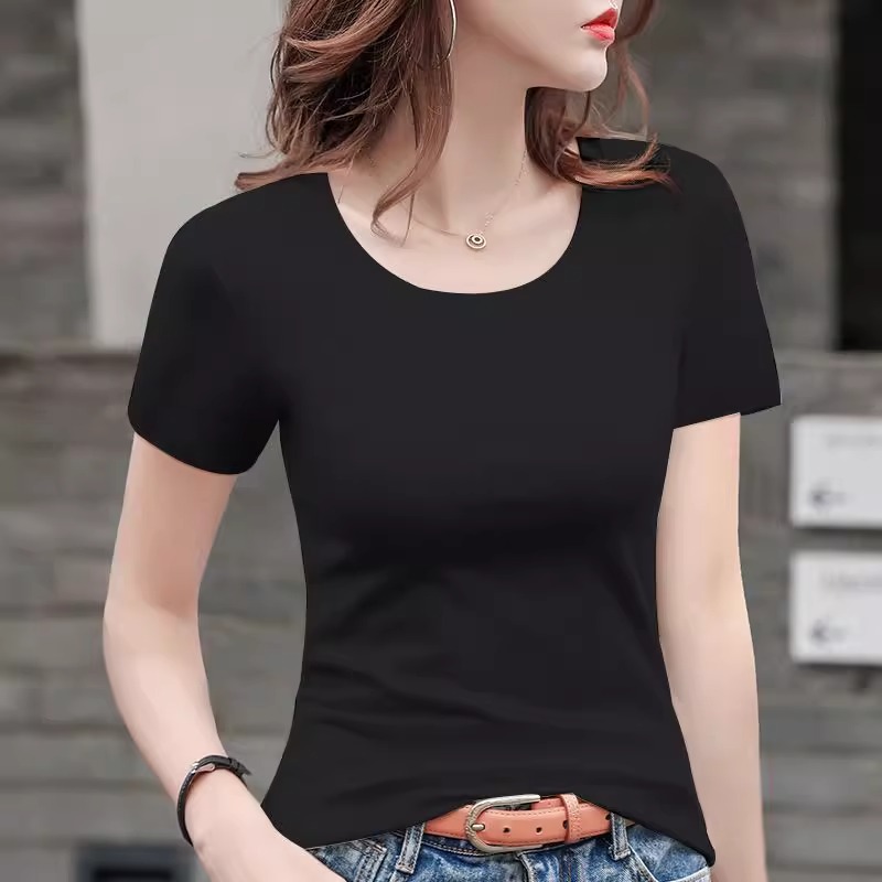 修身 洋气潮流打底衫 半袖 夏季 上衣 2025新款 白色纯棉t恤女内搭短袖