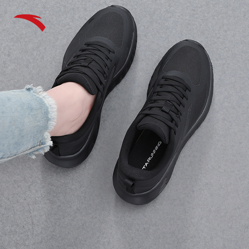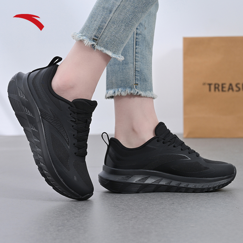 厚底休闲纯黑色跑步旅游通勤鞋 安踏轻云女鞋 新款 2025秋季 子 运动鞋