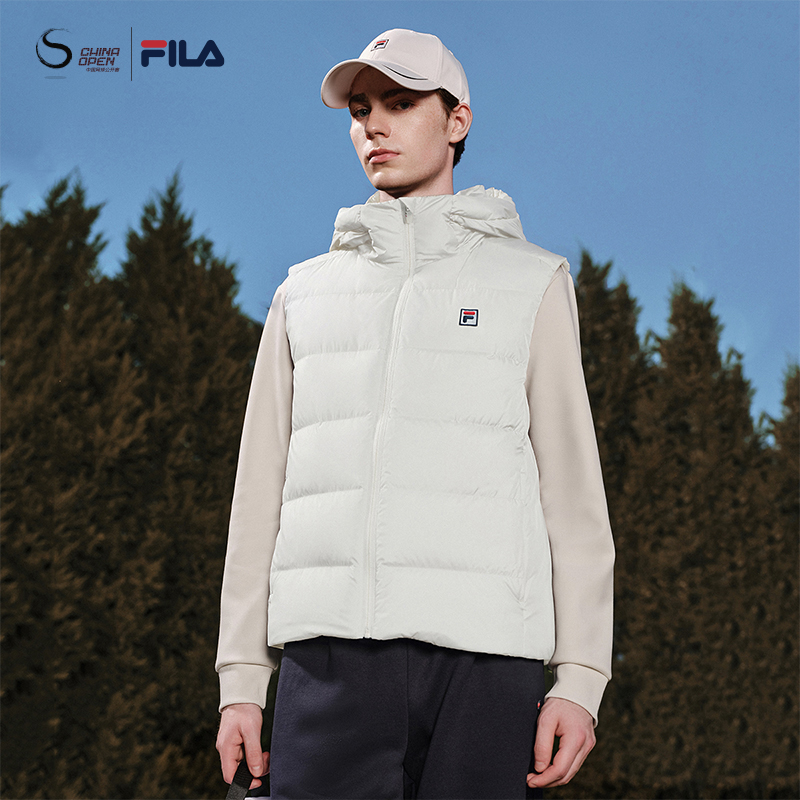 网球运动保暖连帽羽绒外套 新款 鹅绒FILA 斐乐官方男羽绒马甲冬季