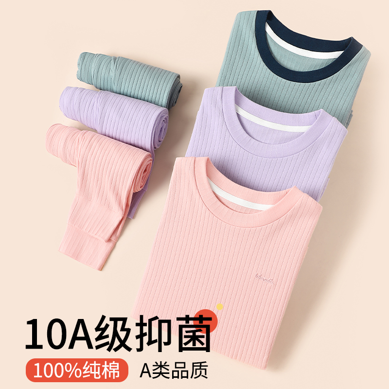 初中生少女秋衣秋裤 纯棉a类女大童儿童保暖内衣青少年高中生 套装
