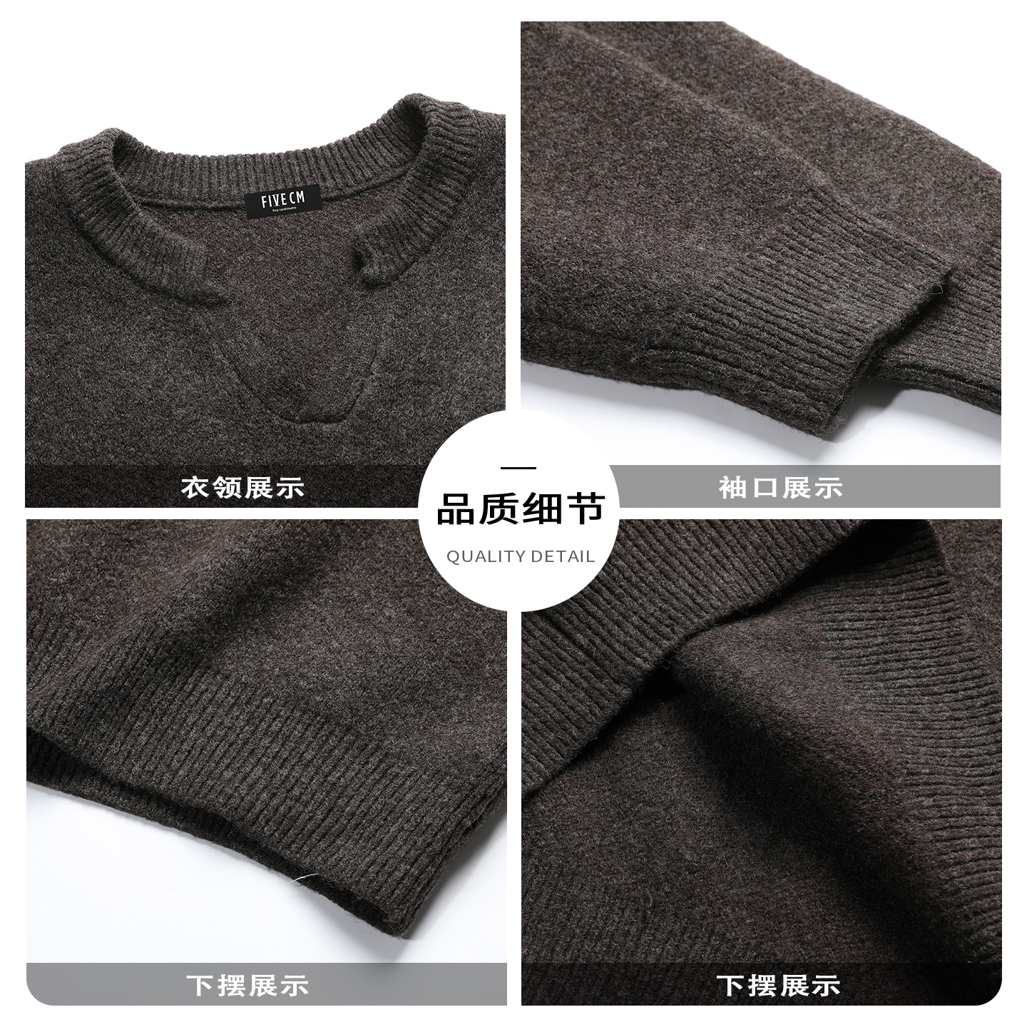 2025秋冬款 针织毛衣男款 FIVECM慵懒风套头亨利领长袖 上衣 5cm