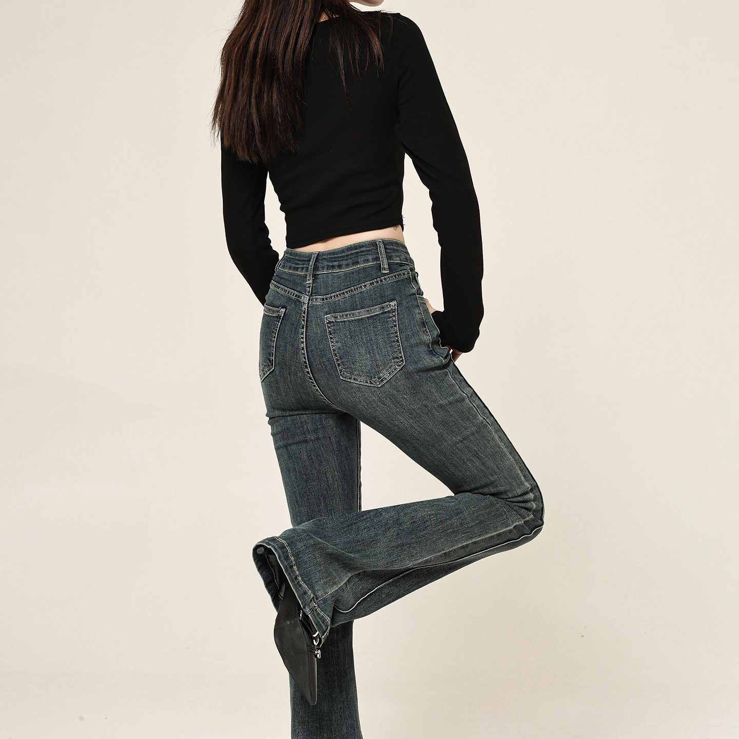 显瘦设计感喇叭裤 复古辣妹弹力微喇牛仔裤 高腰修身 新款 女2025秋季