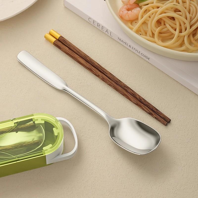 上班族筷子勺子套装 儿童餐具小学生304食品级不锈钢便携餐具防滑