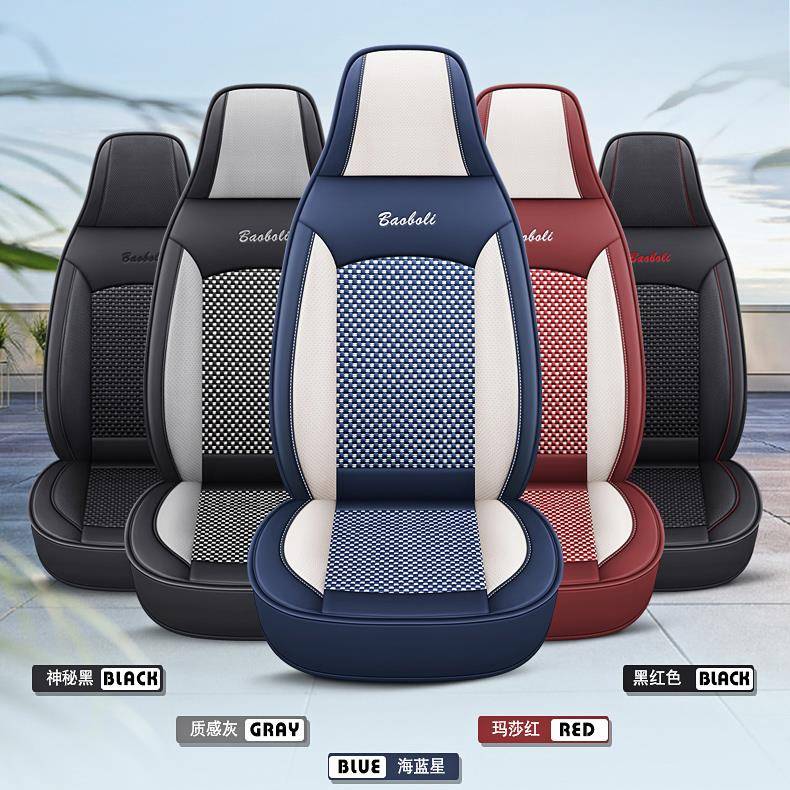 汽车坐垫四季 通用全包围透气纳帕皮编织冰丝座椅套连身专用车座套
