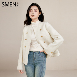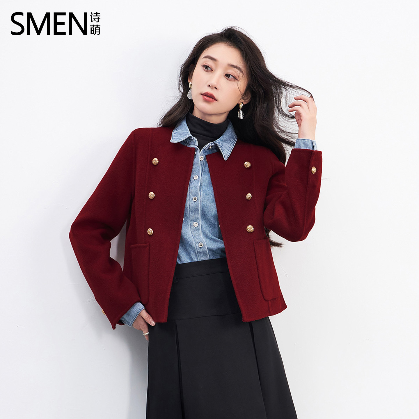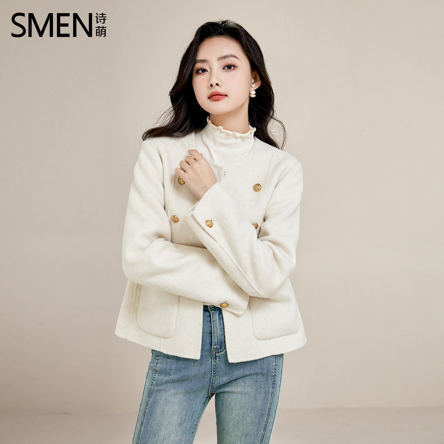圆领大衣女小个子气质毛呢外套 高端羊毛双面呢短款 2025年春季 新款