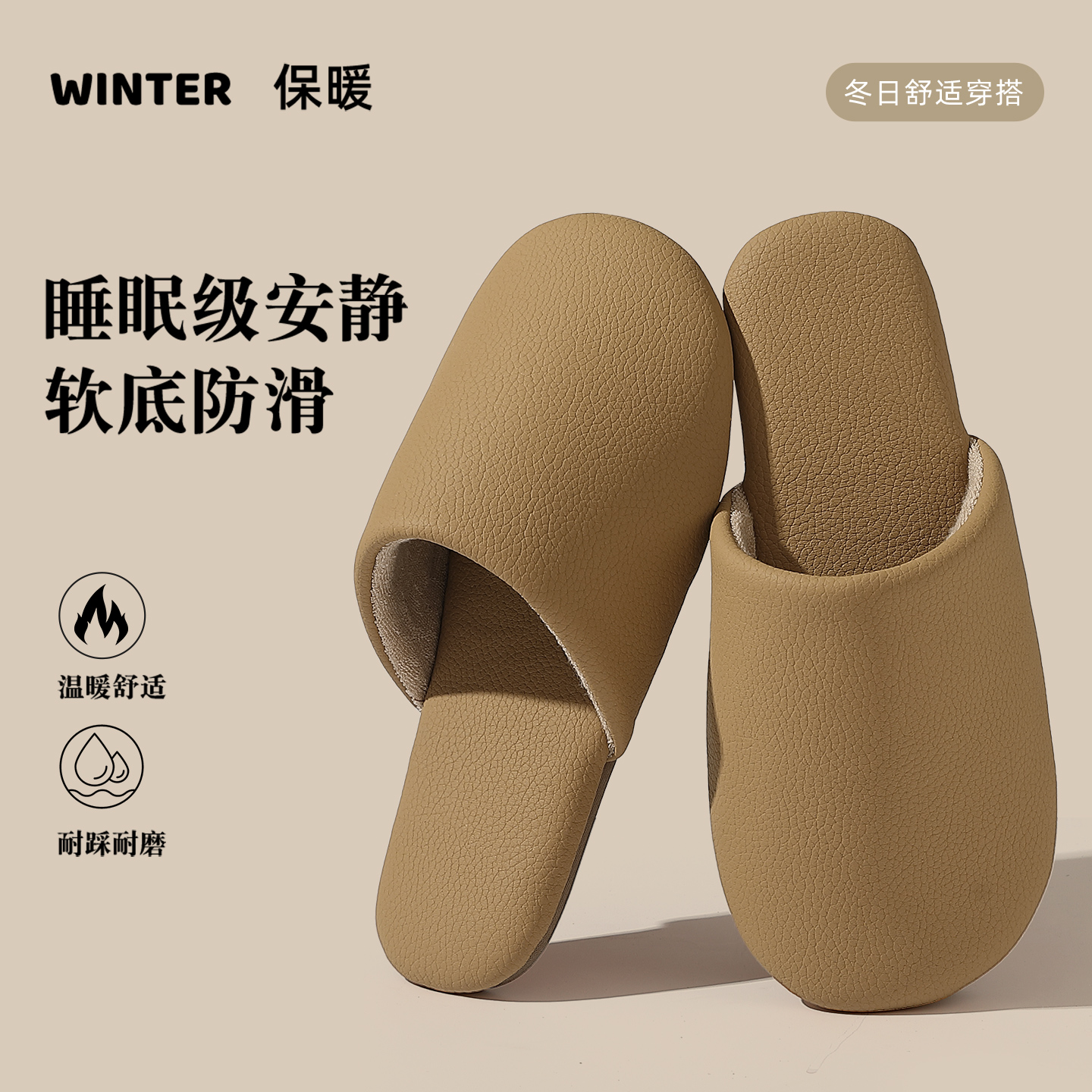 男士 防水防滑保暖毛毛加绒拖鞋 女士秋冬室内家居2025新款 PU棉拖鞋