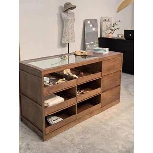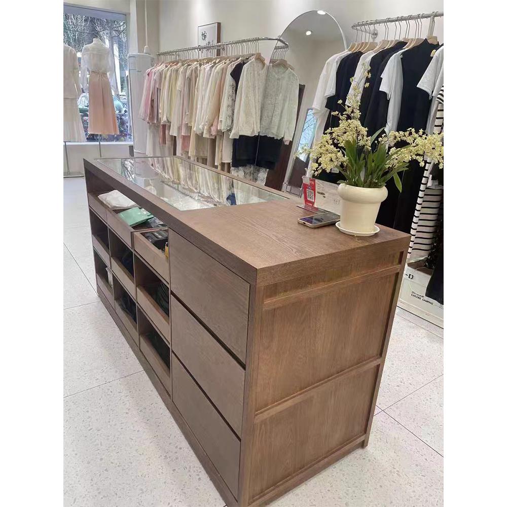 服装 店中岛展示台边柜实木前台收银台接待吧台带玻璃INS高端定制