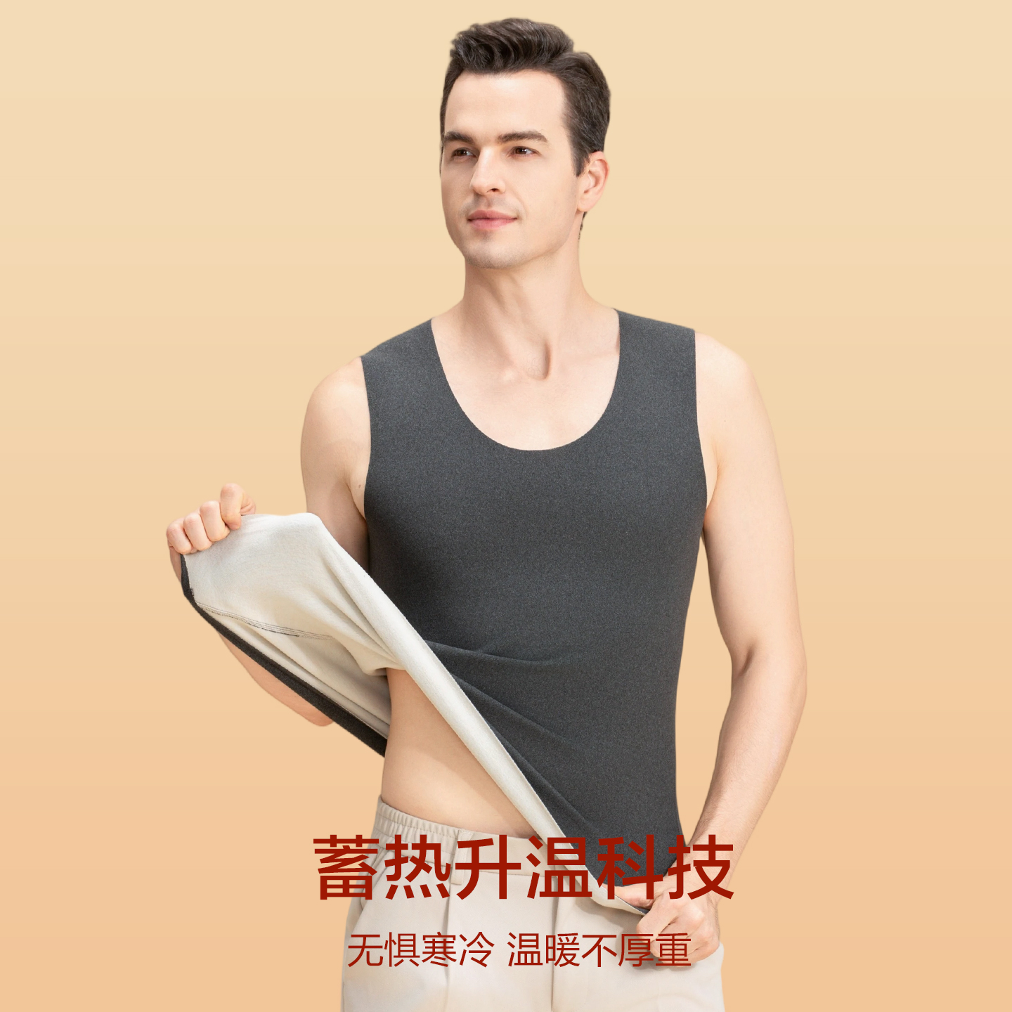 芬腾羊毛蚕丝保暖内衣男绒德无痕发热内穿加绒加厚打底背心冬上衣