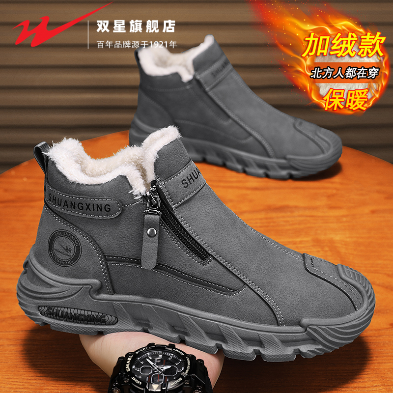 软底休闲中老年人加绒高帮皮面妈妈鞋 足力健旗舰店2024年冬季 新款