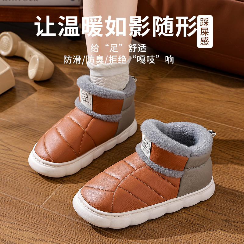 加厚防滑 冬保暖加绒PU皮防水厚底亲子儿童包跟棉鞋 2025新款 棉拖鞋