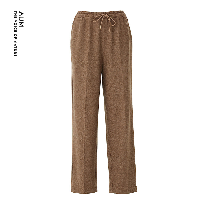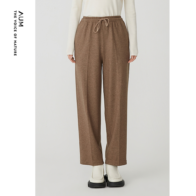 浅咖色舒适高腰直筒可系带休闲长裤 AUM噢姆冬季 会员价981元