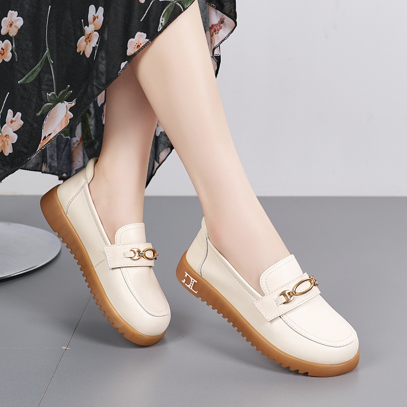 中老年牛筋底皮鞋 真皮妈妈单鞋 2025新款 41一43豆豆鞋 女士春秋大码