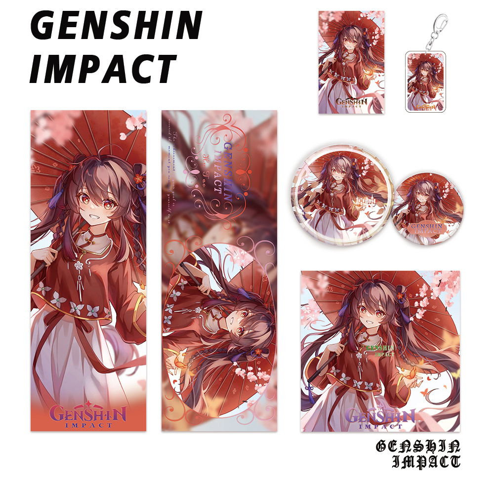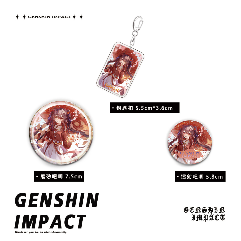 胡桃原神二次元 周边镭射票镭射吧唧徽章钥匙扣明信片小卡六件福袋