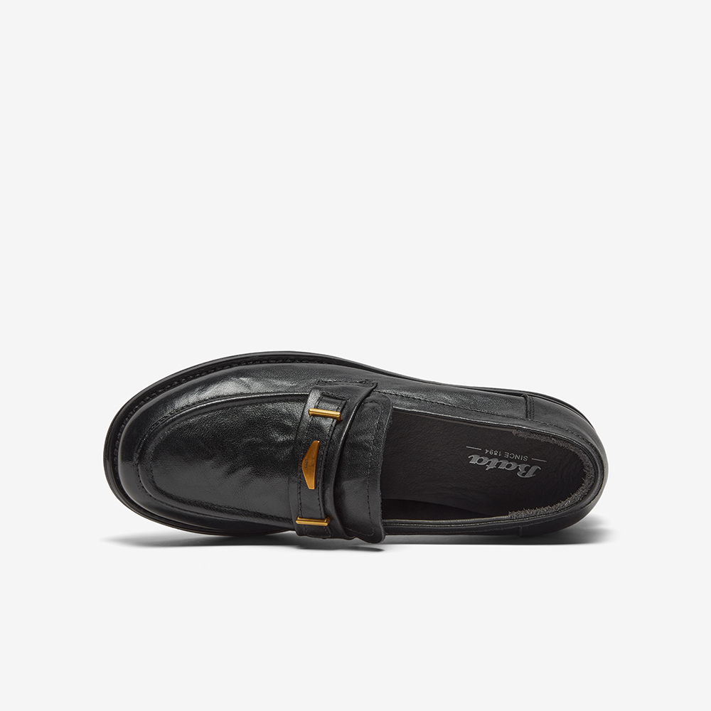 英伦牛皮粗跟通勤一脚蹬单鞋 新款 15711CA5 女2025秋季 Bata乐福鞋