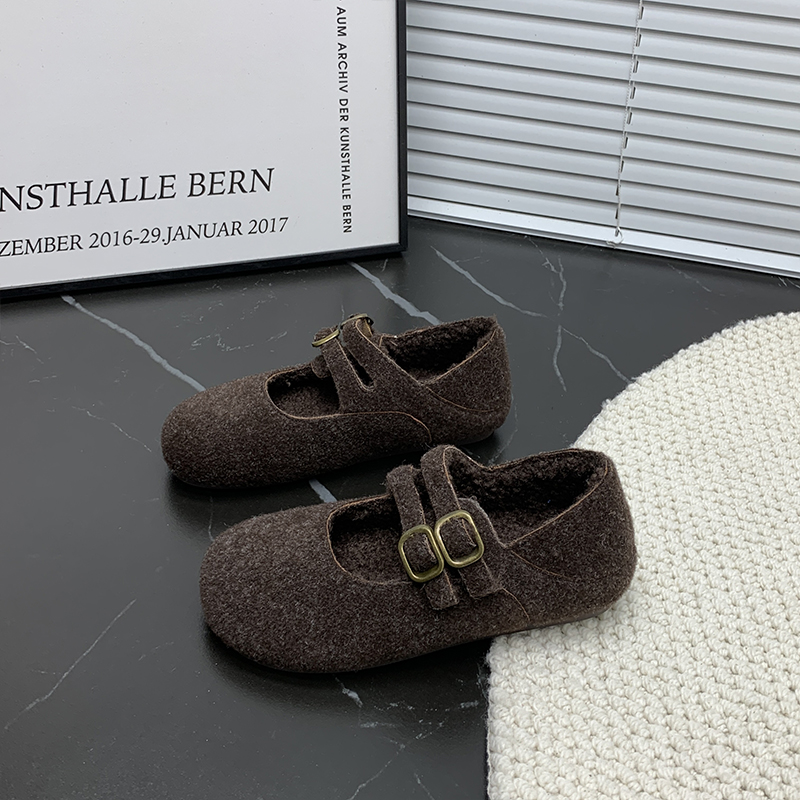 女 羊皮芭蕾玛丽珍单鞋 董洁董璇小酒窝同款 真美诗摩卡慕斯25秋新款