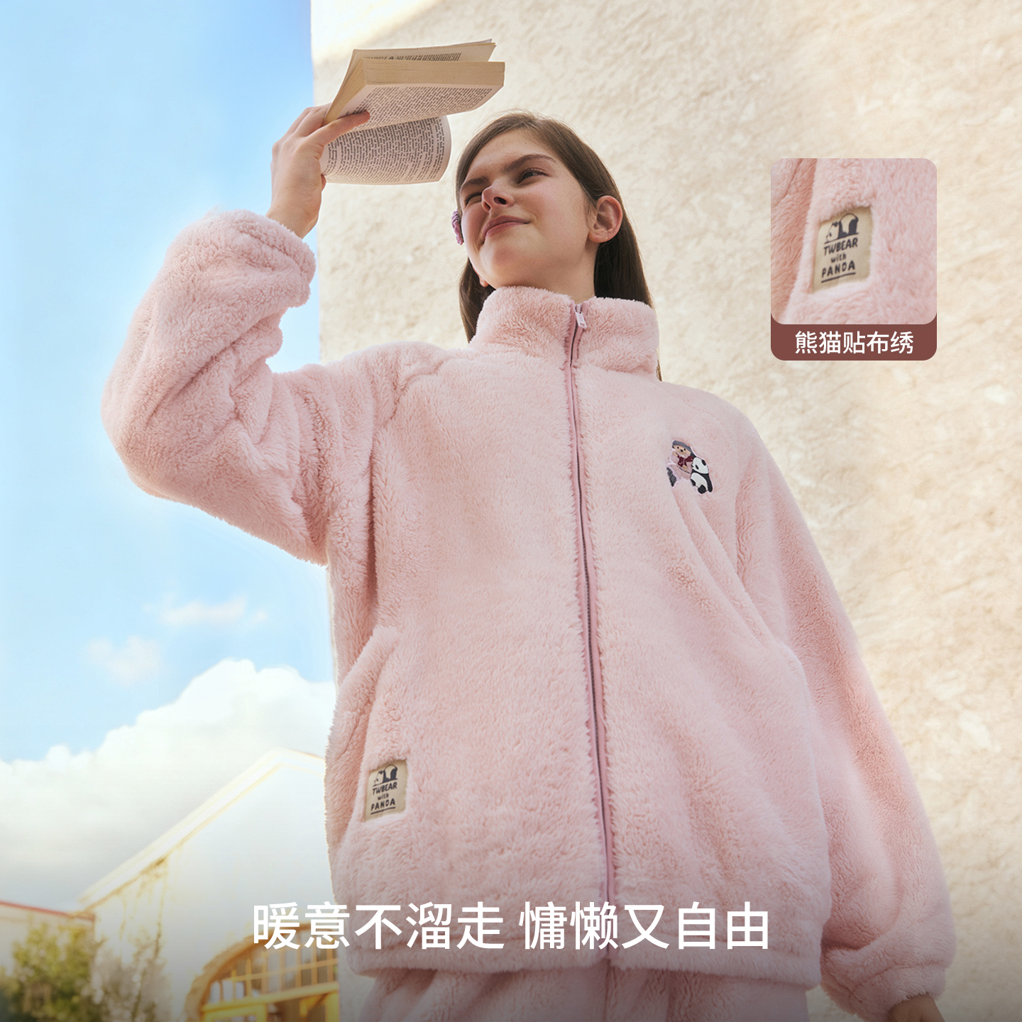 雪花绒锁温保暖可外穿宽松睡衣家居服秋冬天加绒加厚女法兰绒套装