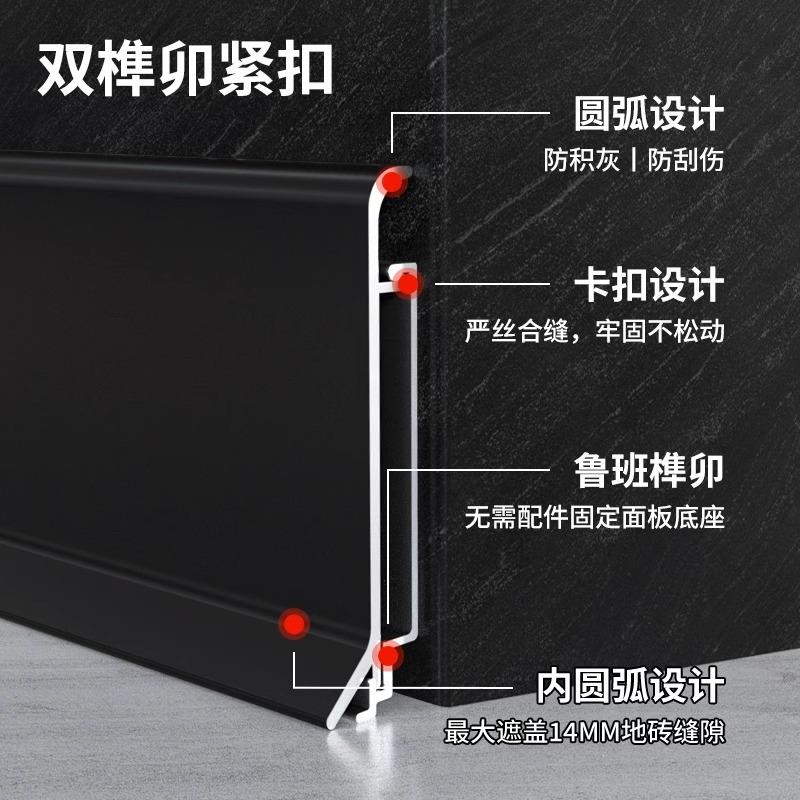 可弯曲金属型材踢脚线 线弧形铝合金踢脚板极窄卡扣 线圆弧贴脚线