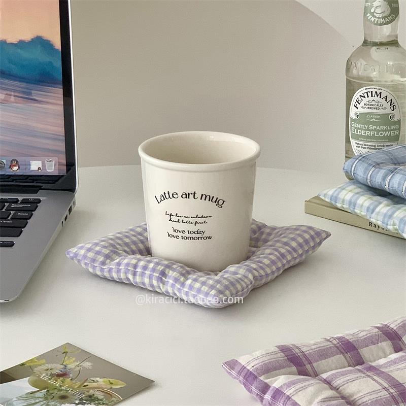 ins格子布艺夹棉吸水杯垫拍照氛围装 饰道具餐桌隔热垫碗盘垫餐垫