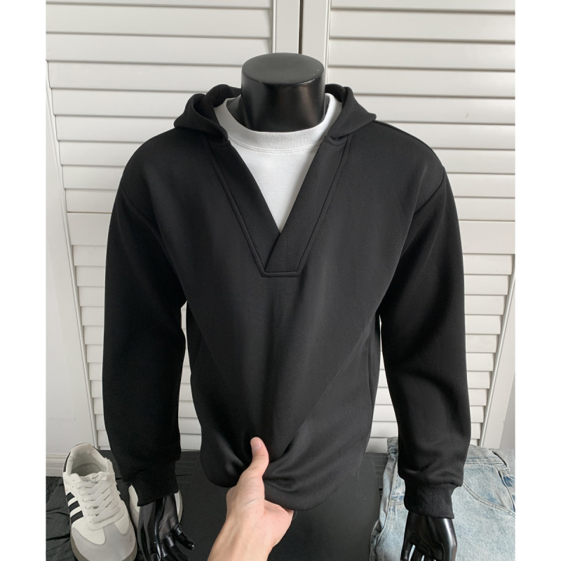 T恤 设计感长袖 cleanfit美式 休闲连帽卫衣男女复古宽松假两件秋季
