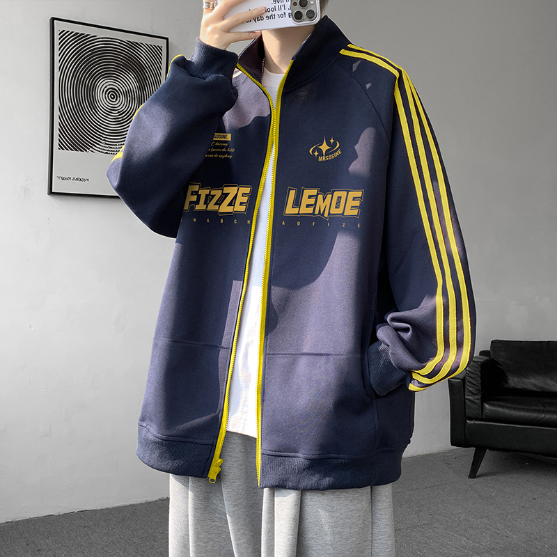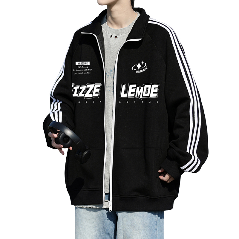 卫衣男春秋季 潮牌长袖 大码 2025新款 上衣 休闲条纹立领外套美式 开衫