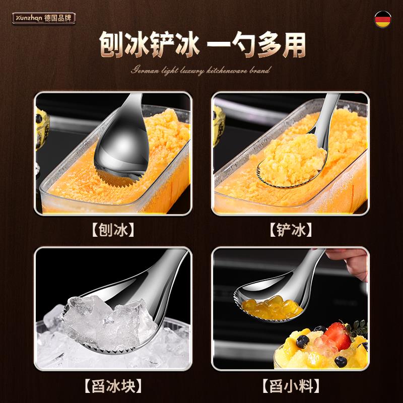 304不锈钢刨冰勺芋泥冰碎冰机刮冰沙勺子挖冰粉雪花酪绵绵刨冰器