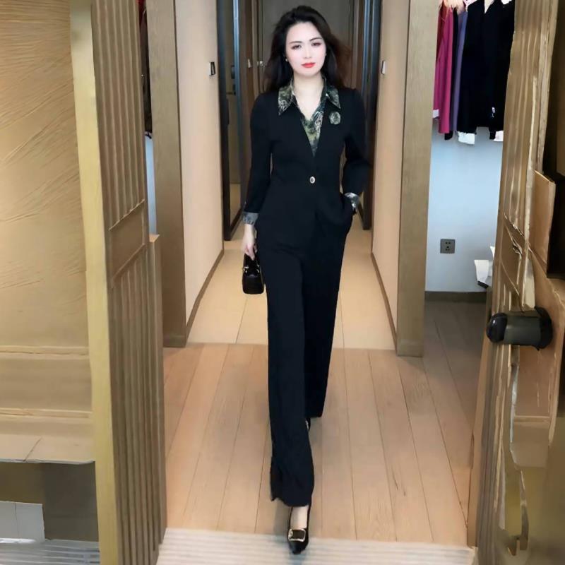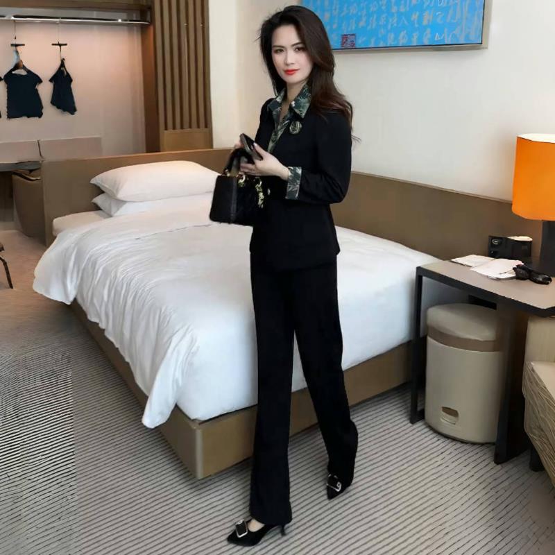 西装 假两件时尚 印花polo领长袖 女春秋新款 外套气质穿搭一整套 套装