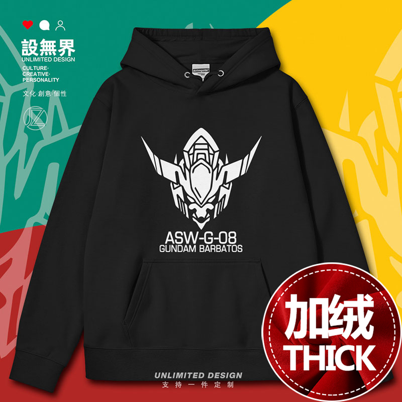 无界 外套秋冬潮牌设 机动战士高达铁血 孤儿加绒连帽卫衣男女装