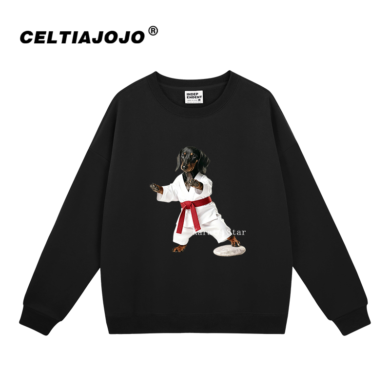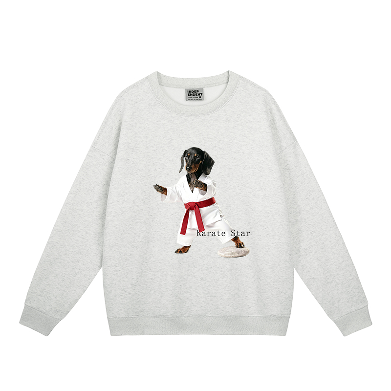 ulzzang宽松韩系慵懒风复古小众美式 腊肠狗花灰色印花圆领卫衣女