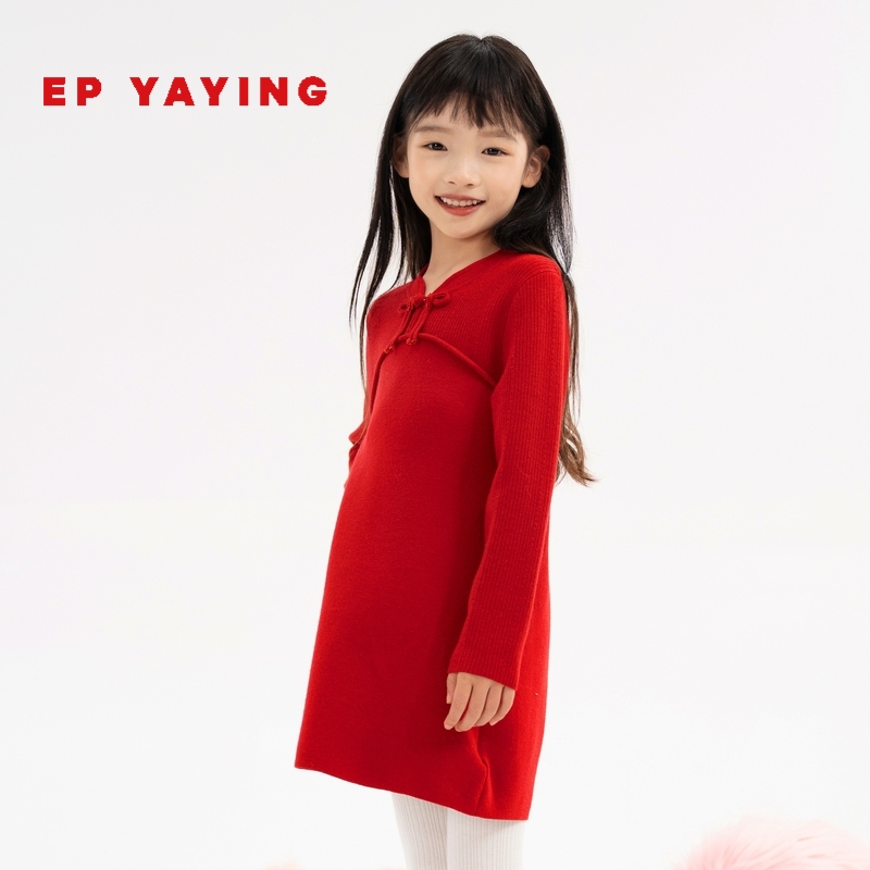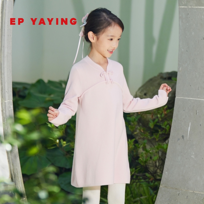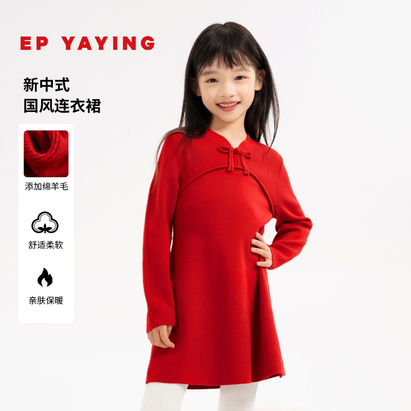 新中式 2025冬女童新款 EP雅莹童装 盘扣宽松针织连衣裙 商场同款