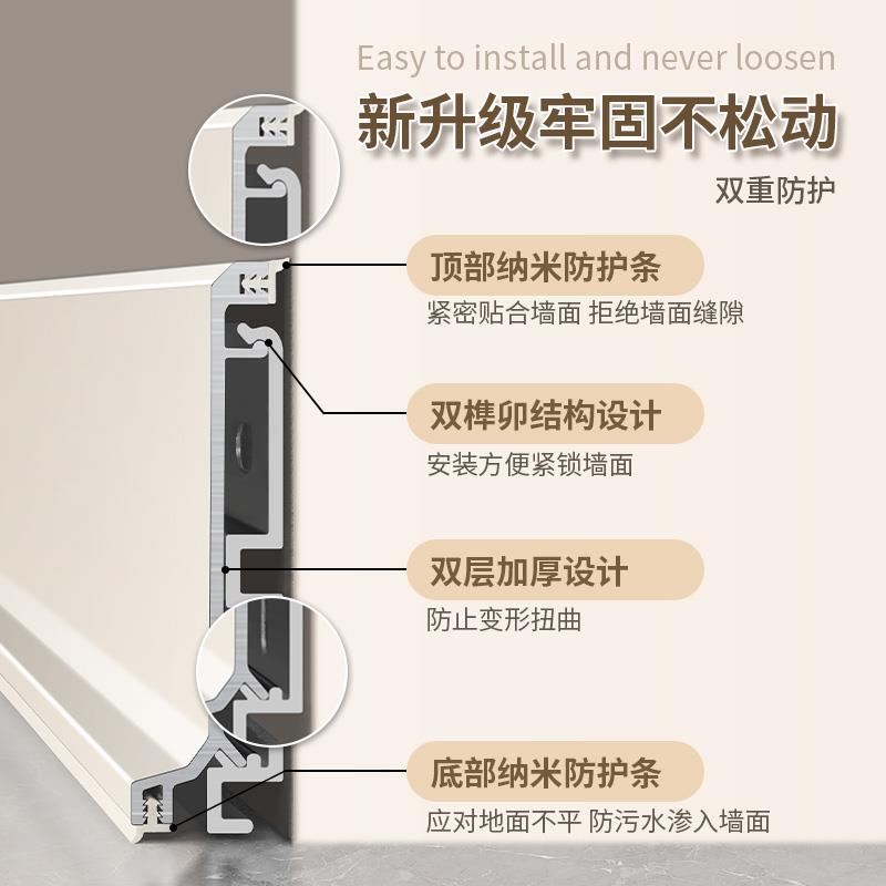 奶油风铝合金踢脚线6cm金属不锈钢新型卡扣地脚线极简超薄贴脚线