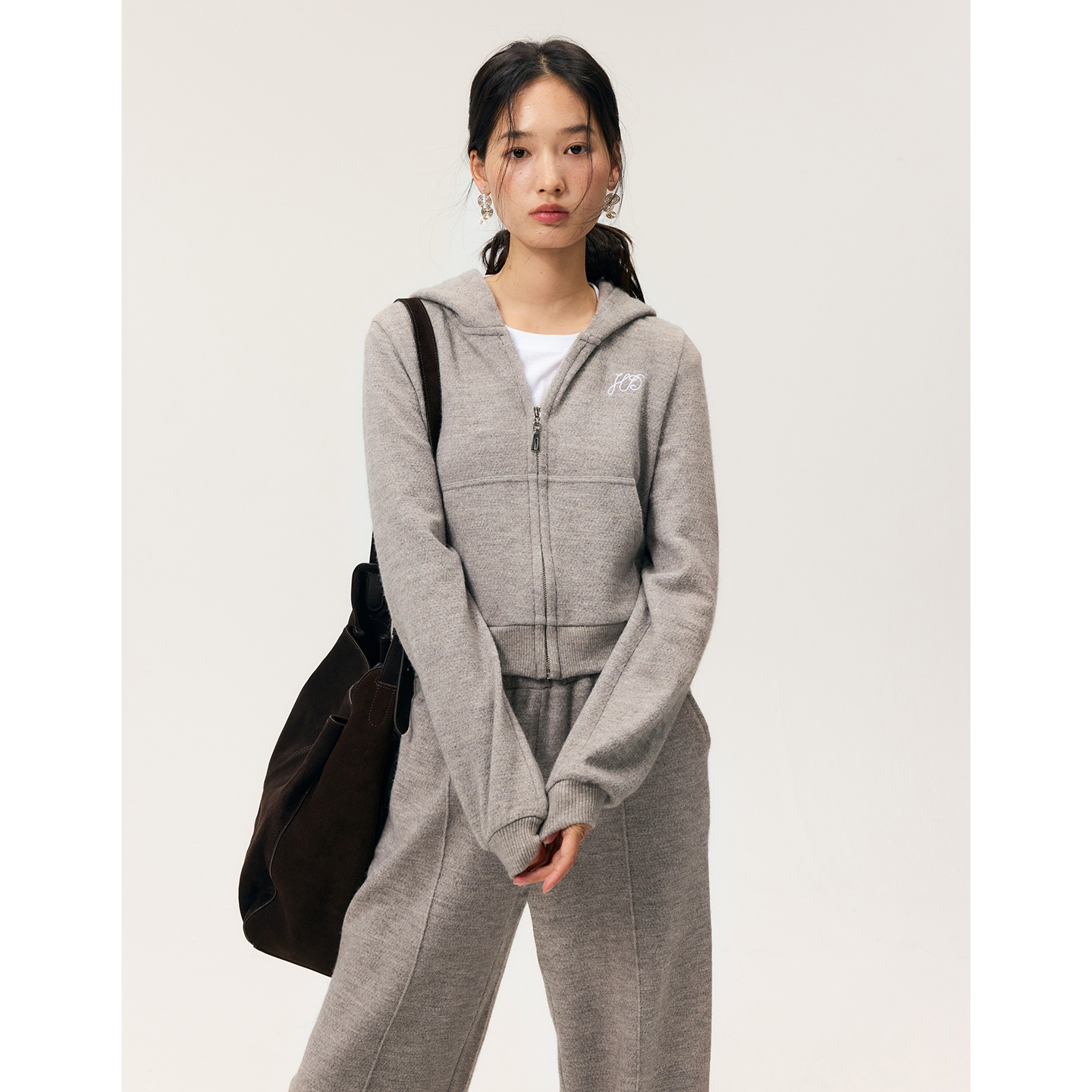 HeyDress弹力针织连帽开衫 女秋冬休闲卫衣慵懒风两件套 外套长裤