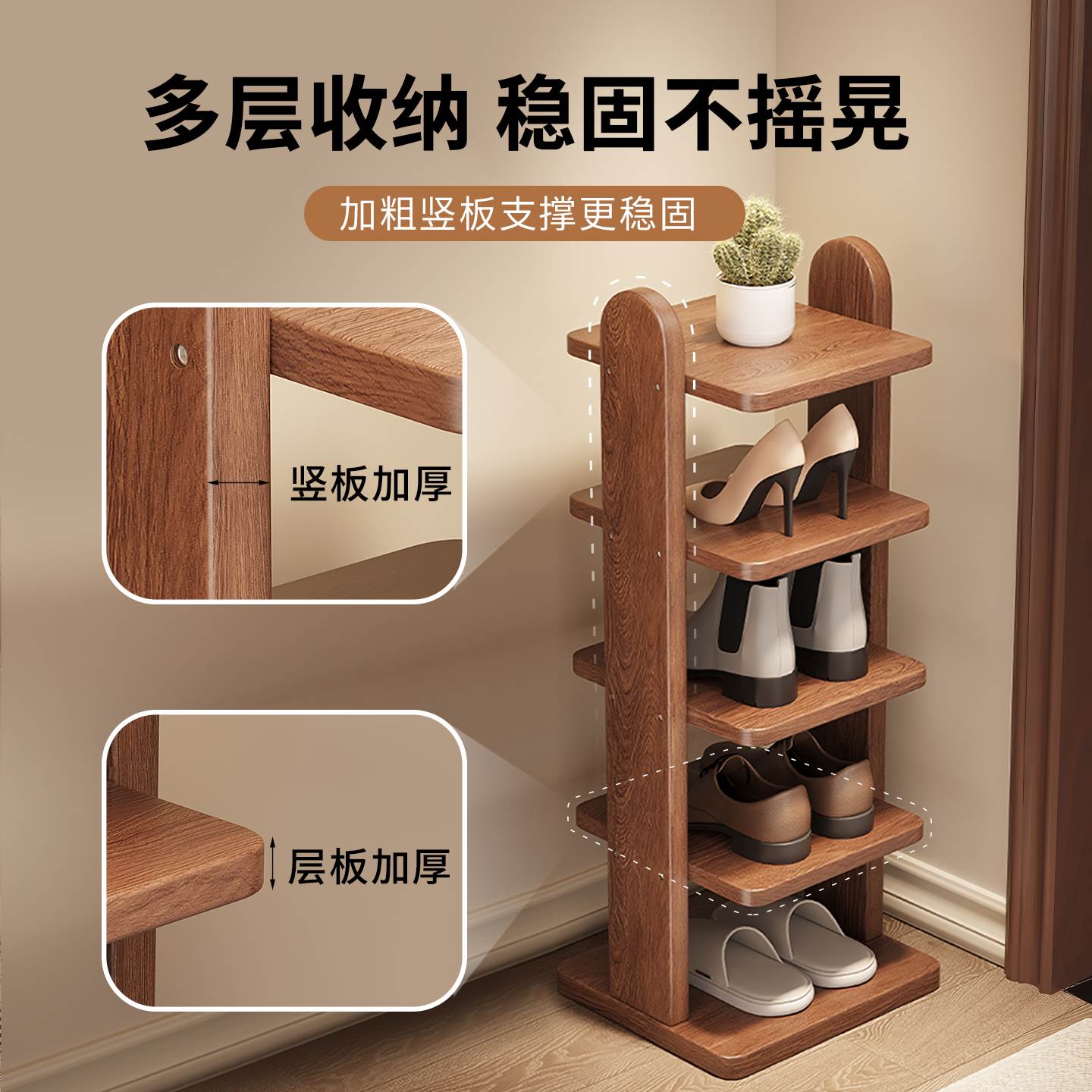 子置物架子 柜小型全实木收纳鞋 鞋 架家用门口多层入户室内简易窄鞋
