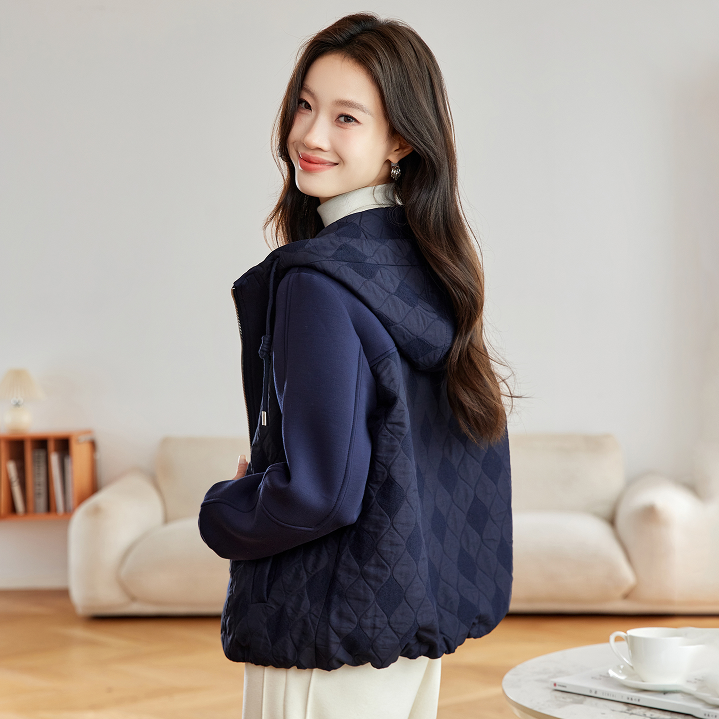 秋冬休闲百搭宽松显瘦夹棉厚外套 菱格连帽棉服女2025新款 时尚 冬款