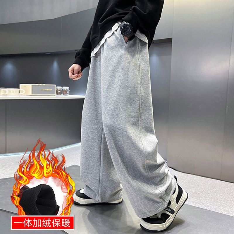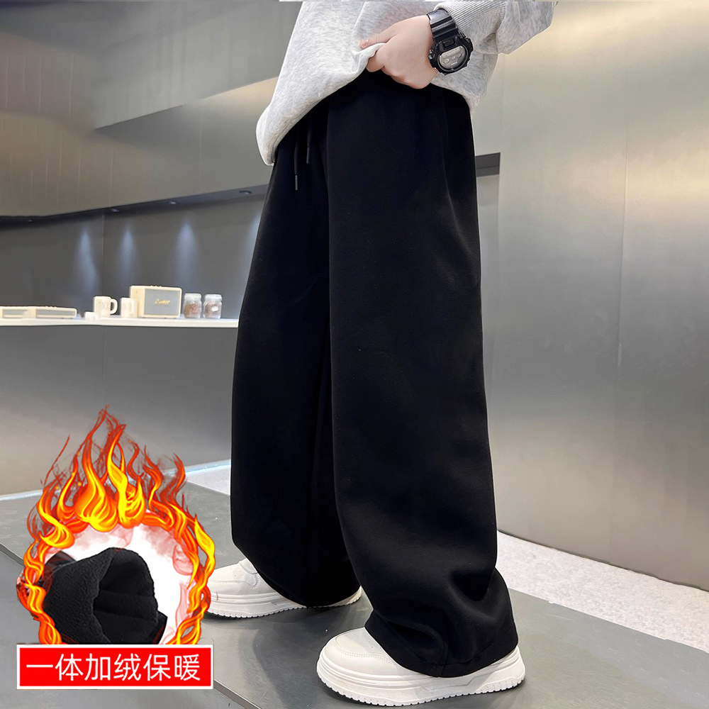 潮酷中大童宽松阔腿卫裤 秋冬2025新款 加绒加厚 子男童运动裤 儿童裤