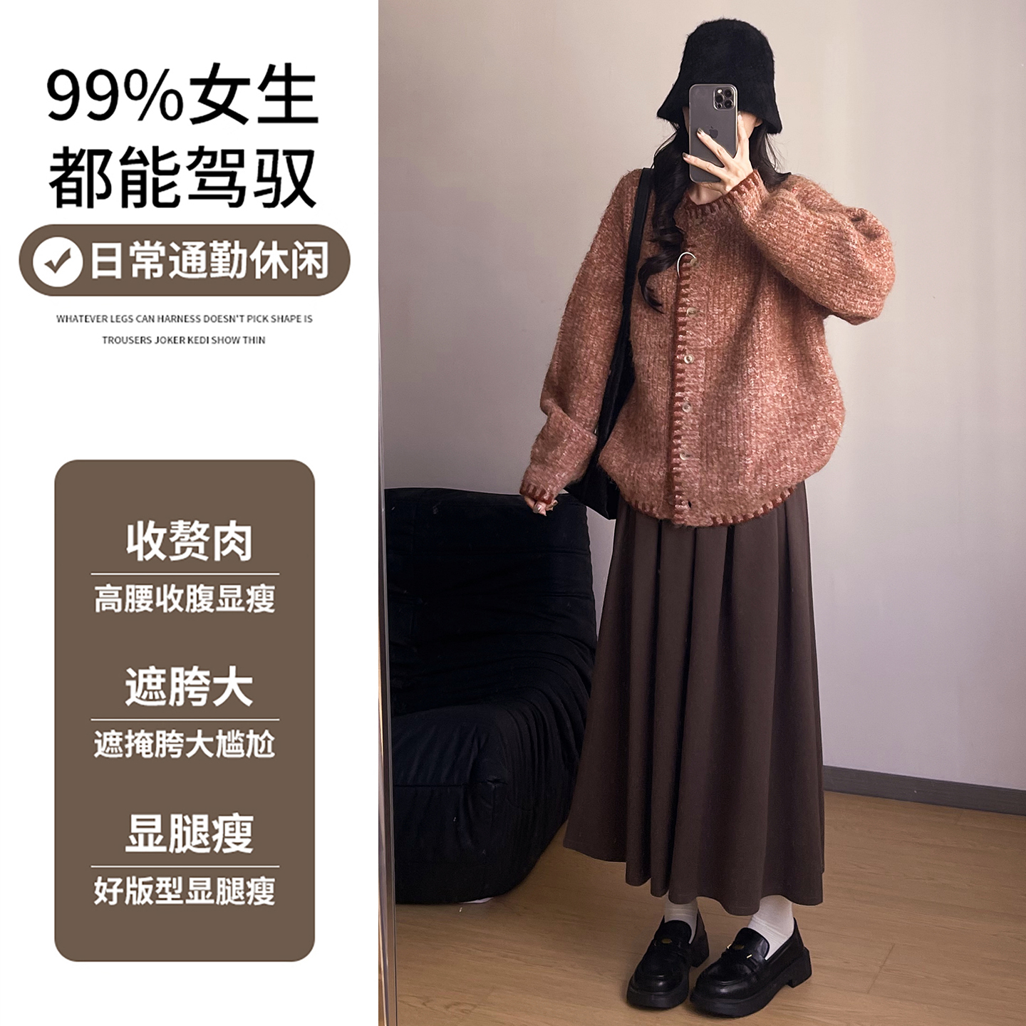 针织半身裙女新款 半裙高腰秋冬裙子半身长裙 a字裙高级感咖色冬装