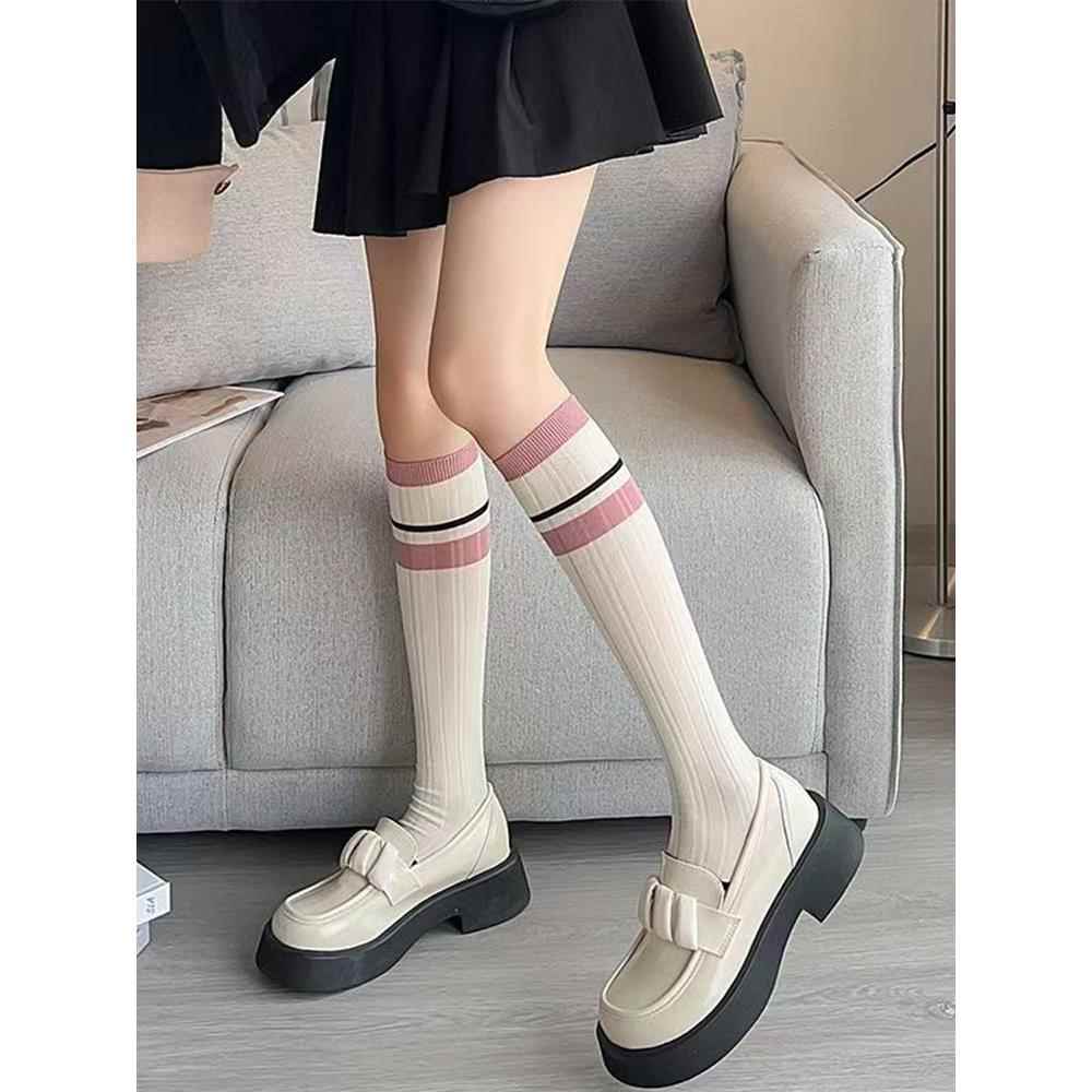 小腿袜子女春秋季 JK潮 过膝袜纯棉中筒袜微压显瘦无骨长筒长袜夏季