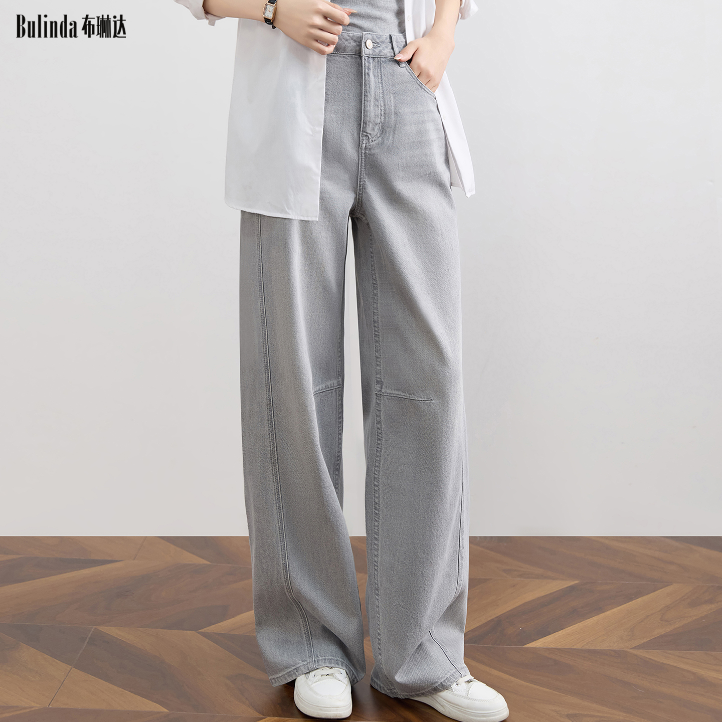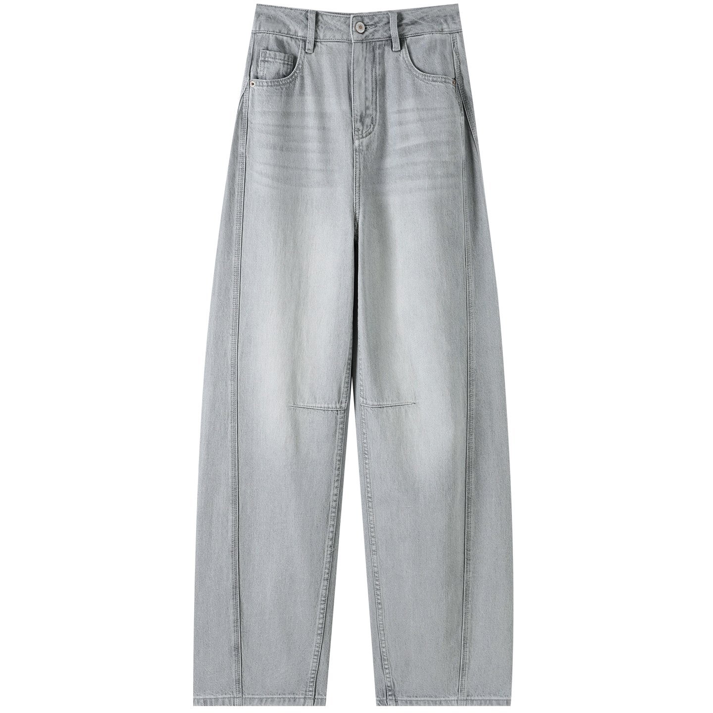 加长高腰宽松显瘦阔腿香蕉镰刀裤 布琳达灰色弯刀牛仔裤 女秋冬新款