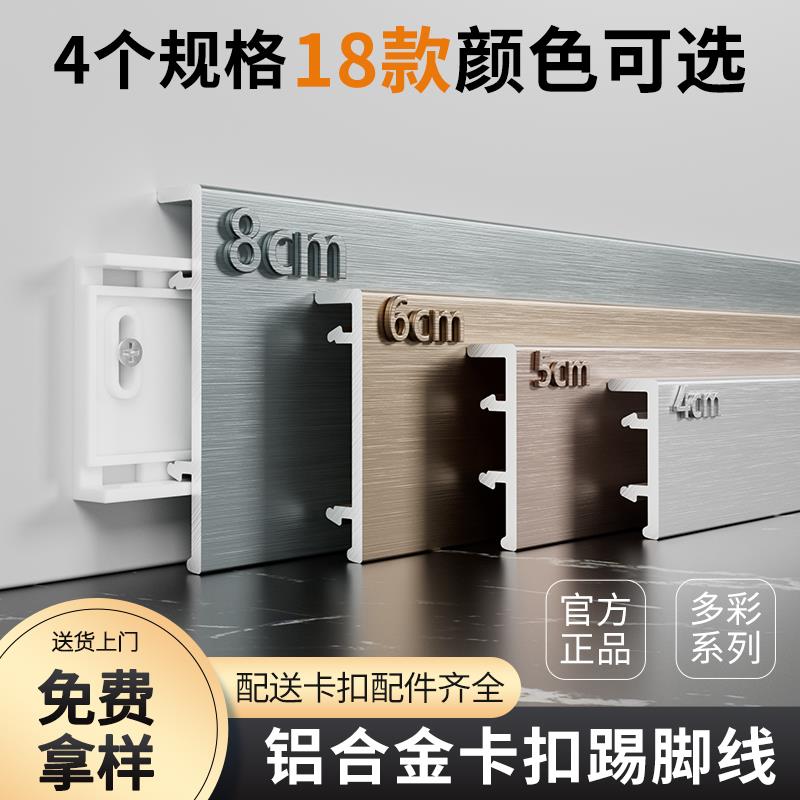 不锈钢墙贴工 地角线条 铝合金拉丝踢脚线 4公分金属地脚线卡扣式
