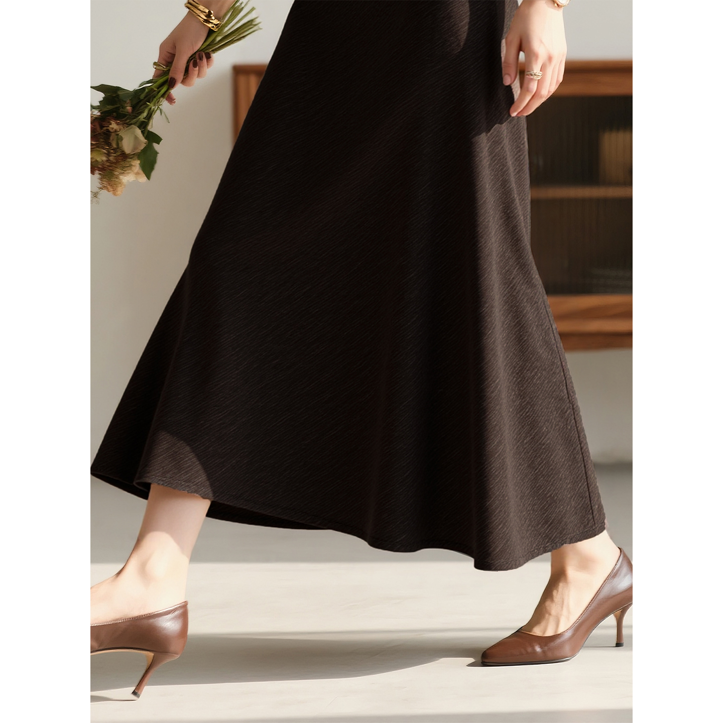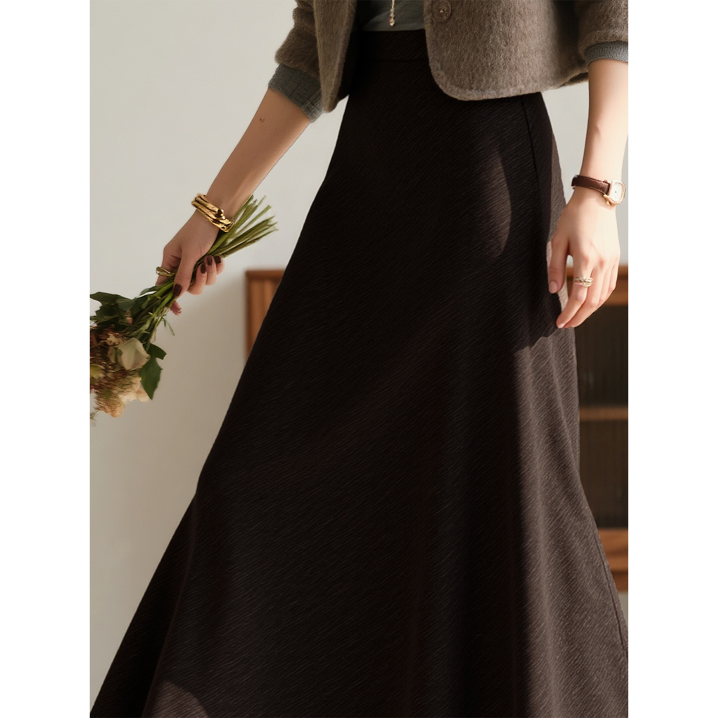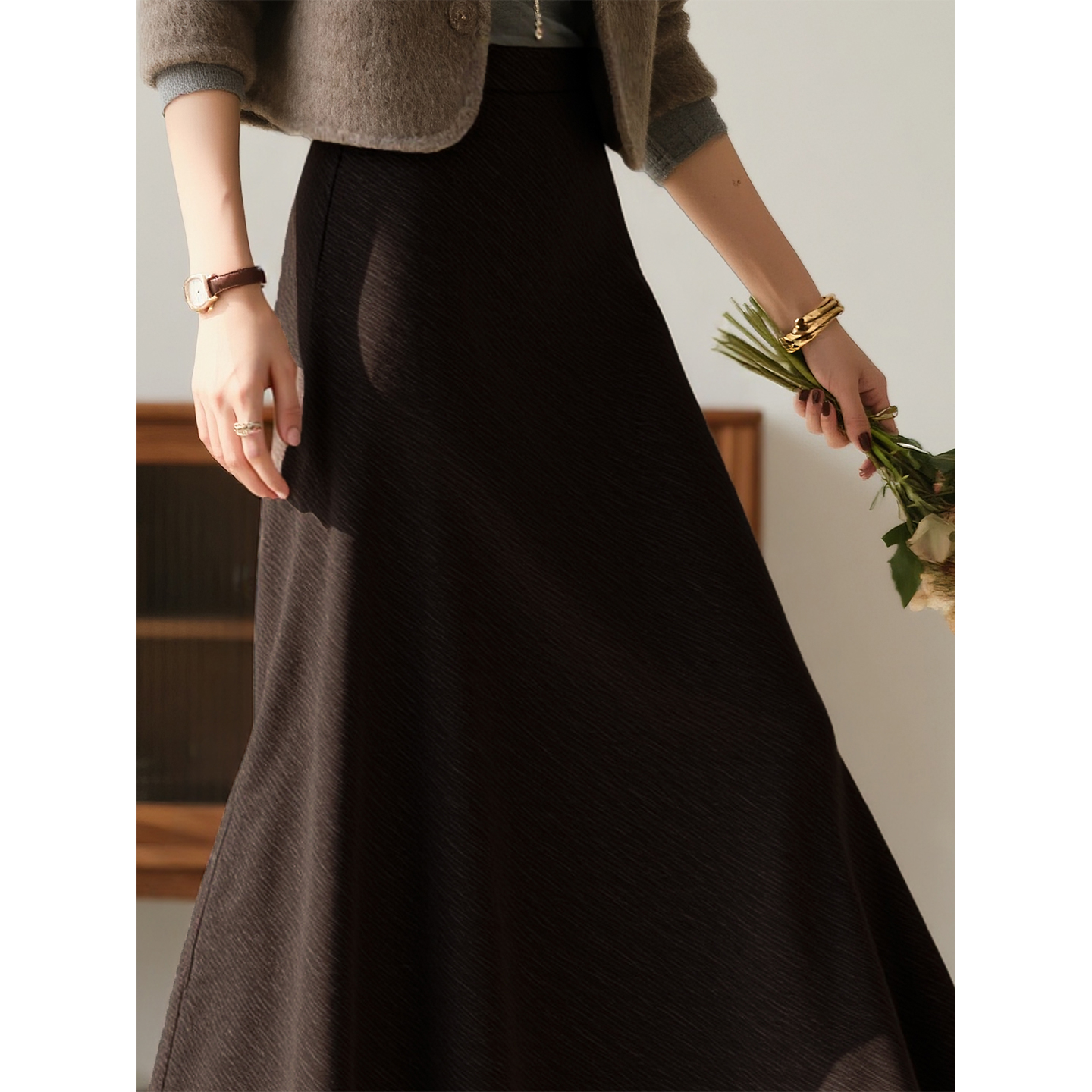 a字裙子 百搭显瘦中长款 咖色半身裙女2025年秋冬新款 高级感时尚