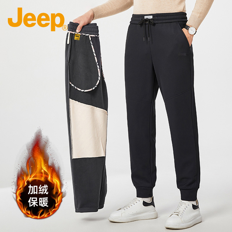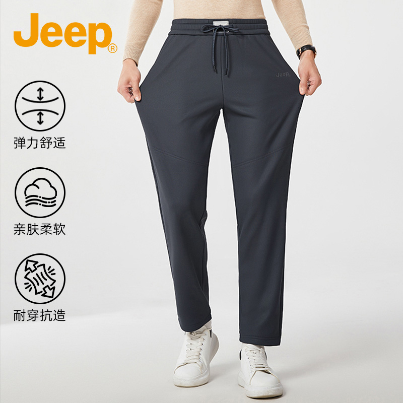 子男款 加绒加厚直筒官方正品 男士 JEEP 运动裤 裤 休闲裤 吉普秋冬季
