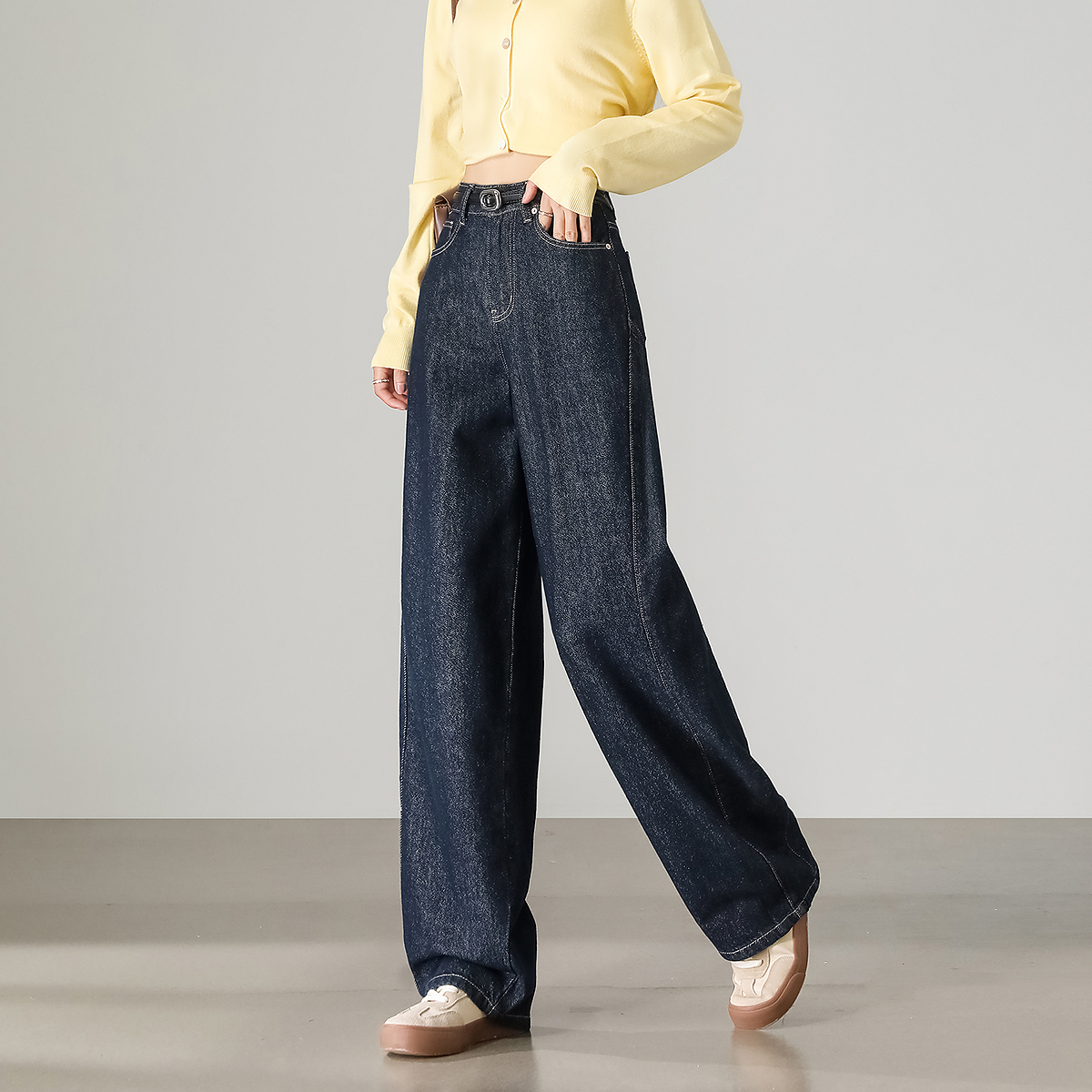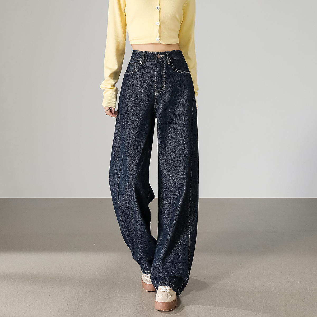 女冬40933286 100%棉复古高腰阔腿直筒牛仔裤 艾诺丝雅诗 建模裤