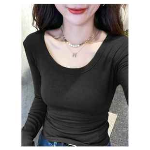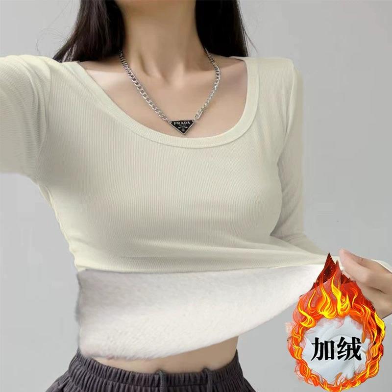 T1006h 洋气内搭显瘦低圆领长袖 加绒加厚U领锁骨打底衫 女秋冬新款