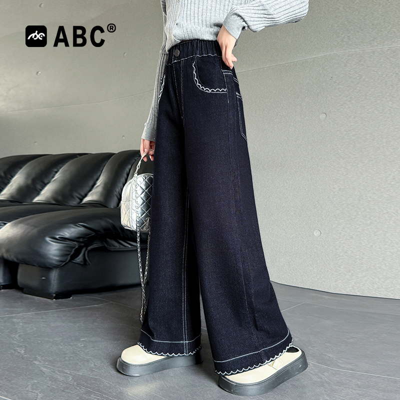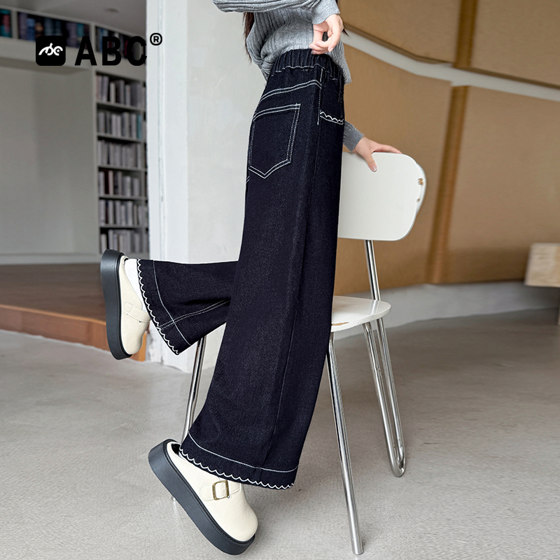 新品 春夏裤 优选 毛边牛仔长裤 子儿童阔腿裤 马克华菲女童喇叭裤